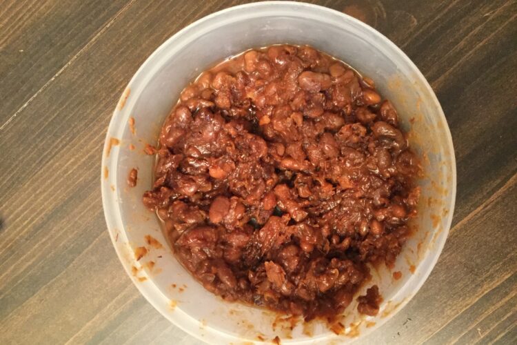 Add 1 can Grandma Brown’s or Bush’s original canned baked beans & 1/2 bag of dry great northern beans or navy beans (any dry bean will be ok) that has been preboiled & drained