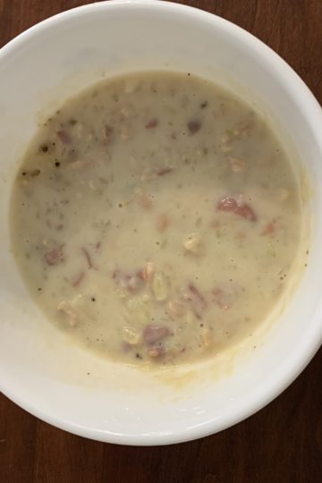 Sauté 4 oz chopped pancetta in 2 T butter Chop 2 stalks of celery into small pieces Chop 1 small onion into small pieces 1 large bay leaf Add to above to brown slightly Add 2 – 3 minced garlic cloves 1 t Worcestershire sauce 3 undrained cans of chopped or minced clams (Snow’s brand […]