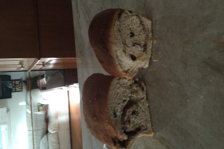 Mix together 3/4 cup sugar and 2 tablespoons cinnamon, and sprinkle mixture on top of the moistened dough