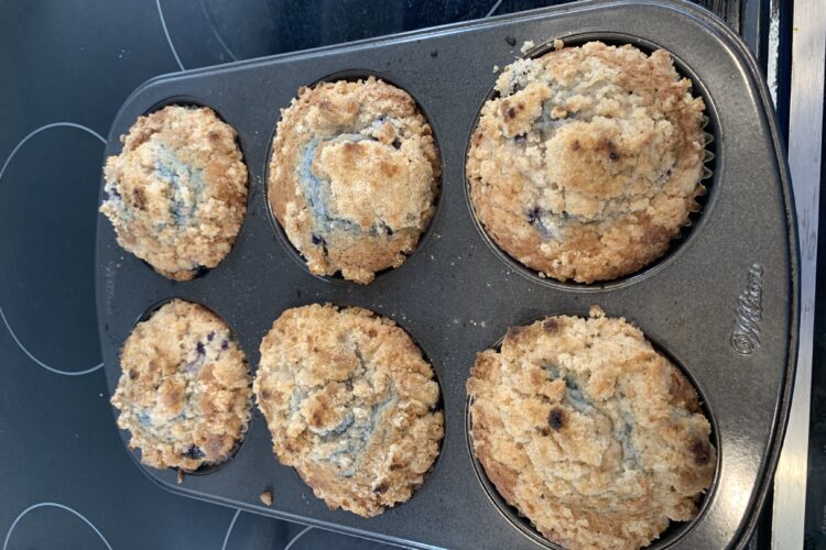 Preheat oven to 400 degrees.  Fill muffin tin with jumbo muffin cups.  Fill each cup 3/4 way to top then add mixed topping on each & bake 25-30 mins.  Makes 8 large muffins.
