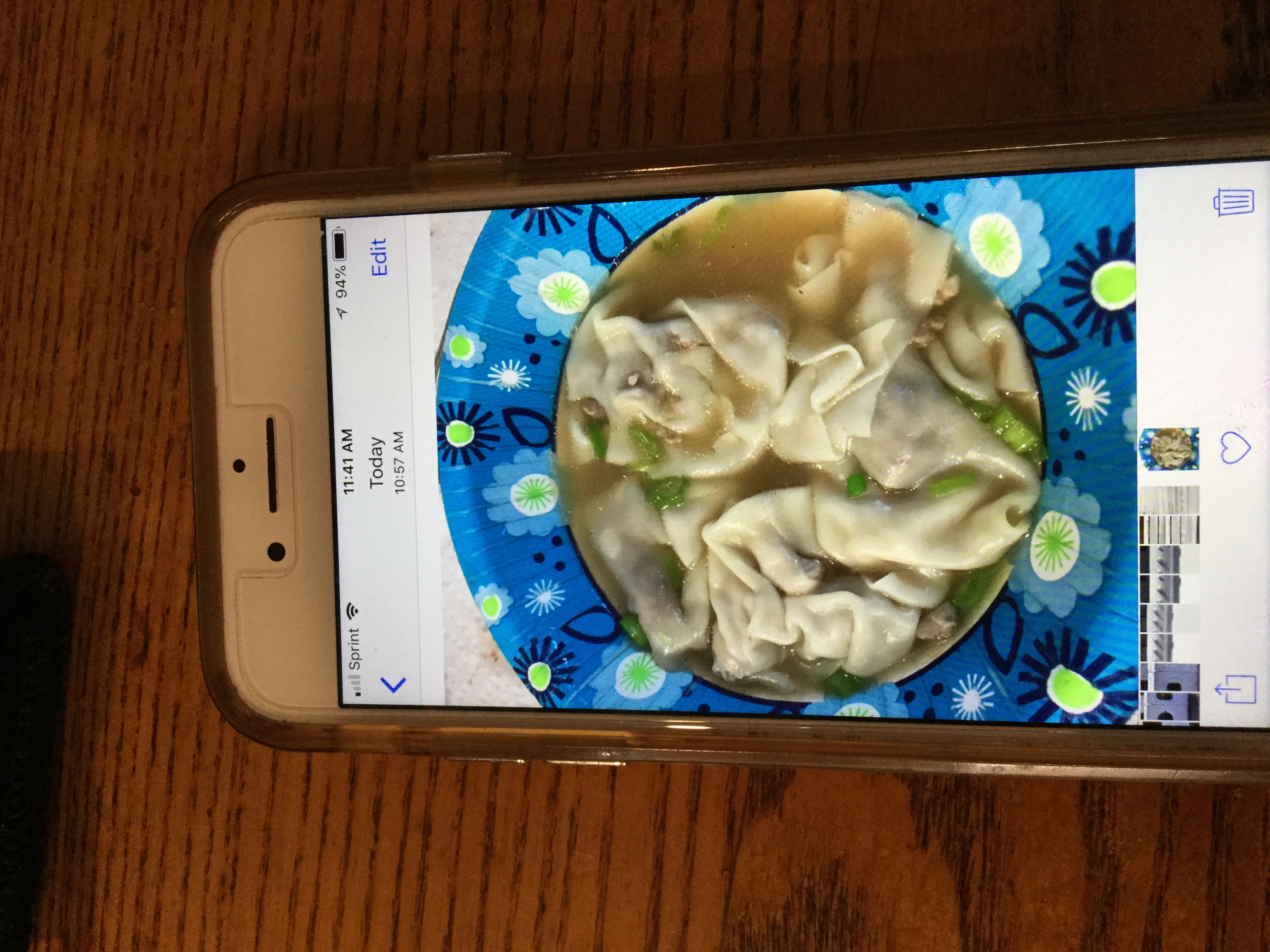Bring 32 oz chicken broth to a boil, drop in won tons & boil for 5 min. Garnish with an 1/8 cup chopped green onions