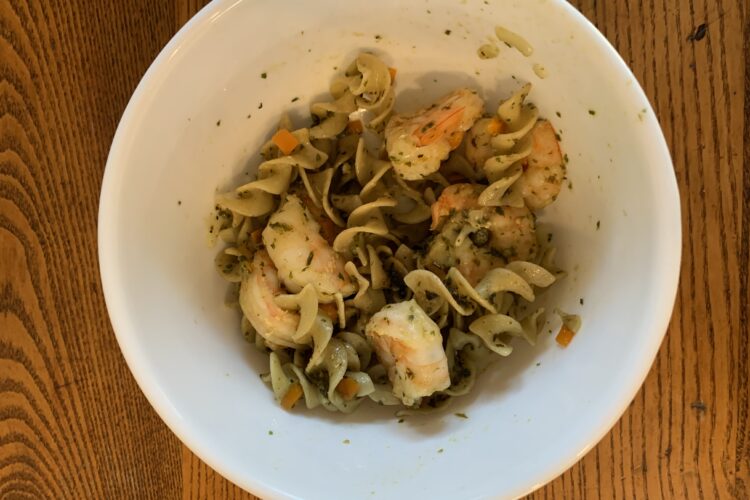 Heat 1 T evoo & cook thawed shrimp, put in a bowl