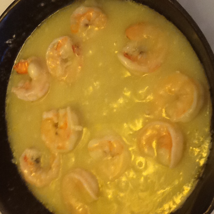 Add 1/2 lb shelled, cleaned shrimp, 1 cup water, 1 chicken boullion cube. Cook shrimp until done