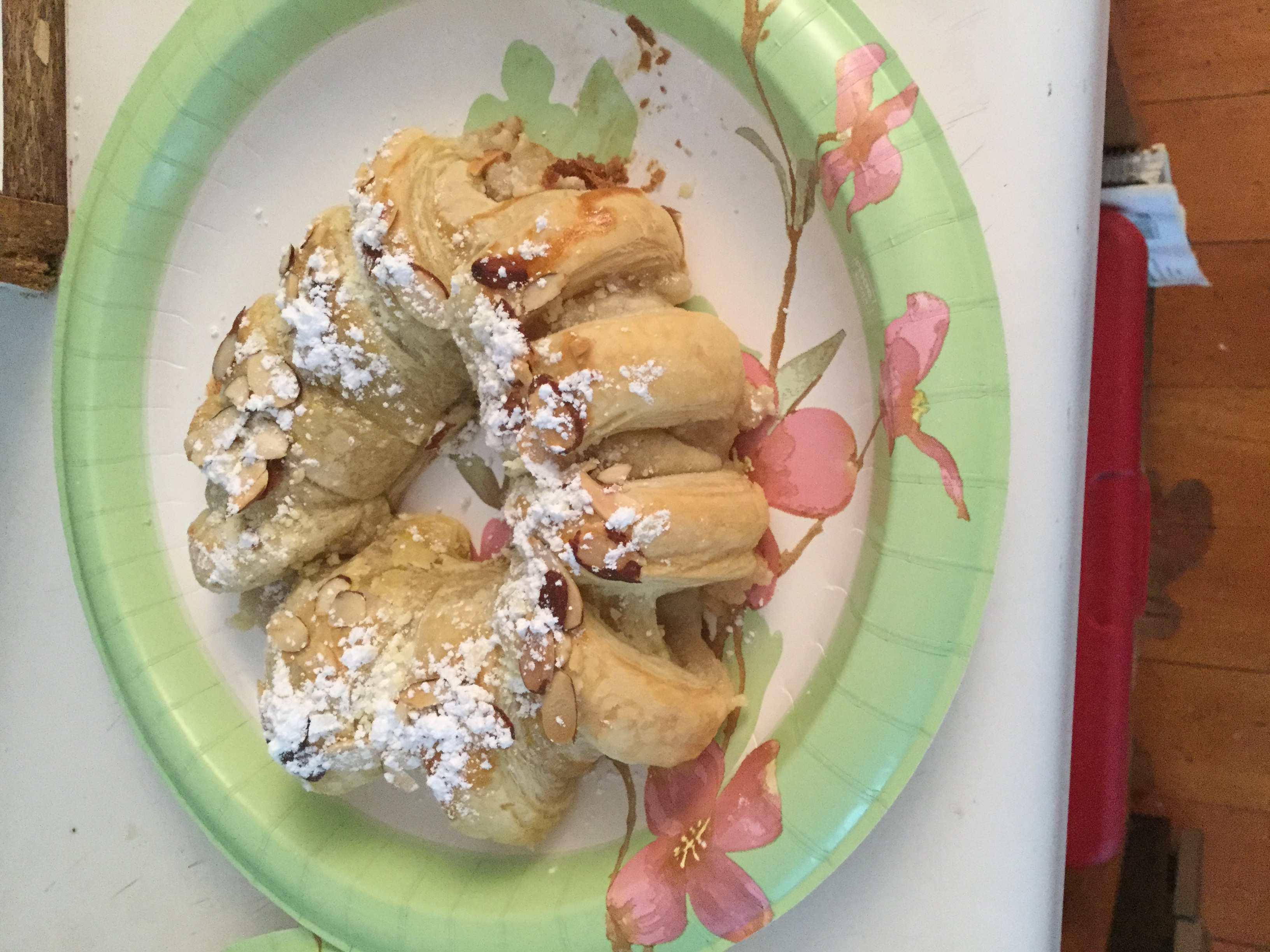 Brush with egg wash & put slivered almonds around dough